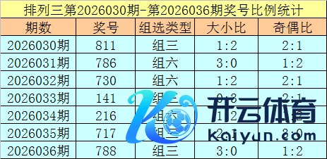 摆设三第2026036期纪念:奖号788,奇偶比1:2体育集锦,大小比3:0,和值23,类型:组三。