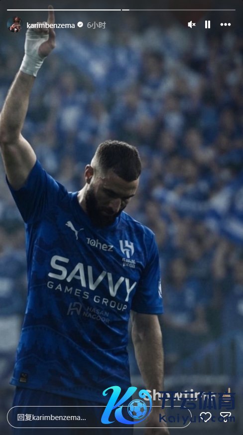 官宣后,本泽马更新社媒,晒出我方身穿月牙球衣单手指天的图,配文“showtime(饰演时期)☝️”。