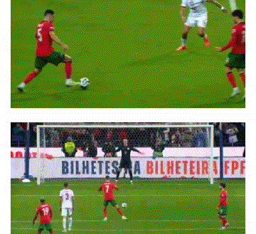 3分钟之后,C罗无敌直塞,内托匡助葡萄牙队再下一城。