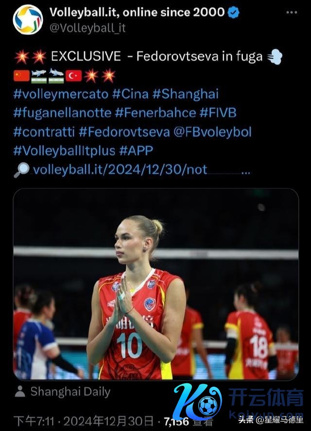 北京技巧12月30日,来自多家外媒的显现,遵循于排超联赛上海光明优倍女排俱乐部的俄罗斯主攻费多罗夫采娃,在俱乐部不知情的情况下,片面断绝合约,未经允许复返土耳其费内巴切女排。费多罗夫采娃依然登上了赶赴土耳其的航班,告别了几个月的中国之旅。 据悉,费多罗夫采娃之是以遴荐片面解约,是因为中国排超联赛将在1月31日达成(原文)。这个达成技巧与土超转会截止日历难以衔尾,费多罗夫采娃将无法在1月底前,回到我方原先所遵循的费内巴切,开导高水平的土超以及欧冠联赛。最终她遴荐片面“失约”。 关于费多罗夫采娃岂