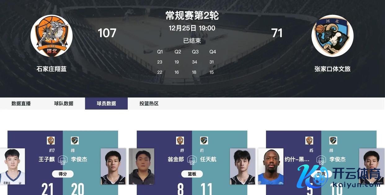 12月25日晚上,NBL惯例赛第二轮来了一场颇有炸药味的河北德比体育录像/图片,石家庄翔蓝碰上了张家口体文旅。这俩队同省又“同城”,彼此太熟,场上天然没什么客气。比赛终末,石家庄翔蓝凭借敏感的紧要和铁桶般的细心,尤其是第三节外助一登场就掀翻越过分怒潮,硬所以107比71大捷敌手,赢下一场带着厚谊的班师。 比赛一上来,节拍就被拉得很快,攻防往来像摆钟同样。蓝本认为翔蓝会平直亮出外助牌,戒指塔琼·科马尔·斯塔克斯和约什·黑根斯齐坐在板凳上不动,声威清一色原土球员。张家口这边的李俊杰先用一个跳投盛开