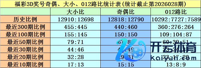 开奖总结:福彩3D第2026028期开出奖号270。奖号步地为组六,奇偶比为1:2,012路比为1:1:1,大小比为1:2,和值为9,跨度为7。