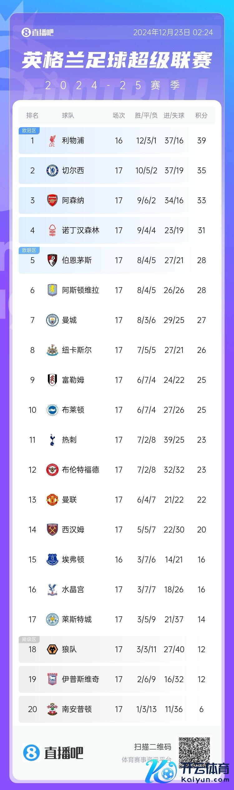 英超积分榜:赤军锁圣诞冠军少赛1轮4分领跑,蓝军、枪手排二、三