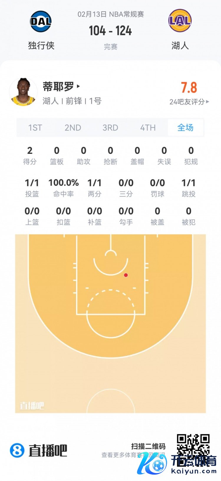 湖东谈主次轮36号秀蒂耶罗 登场1.8分钟