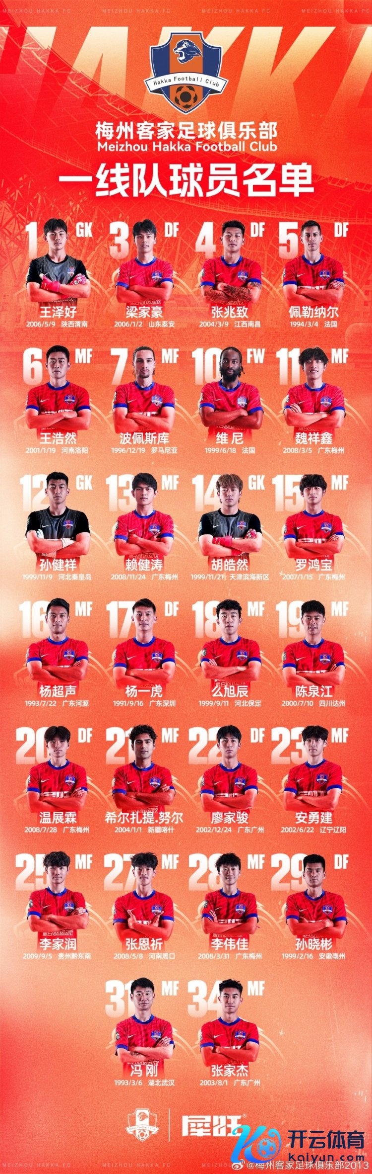 梅州客家新赛季一线队名单