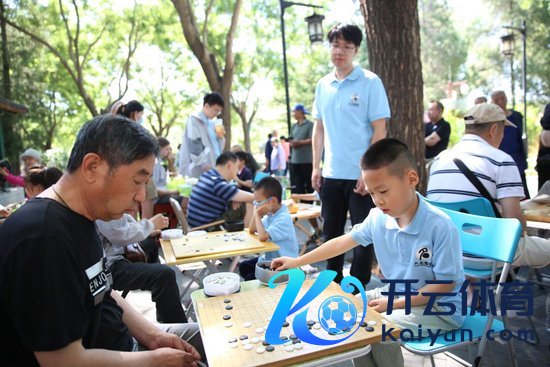 6月1日,小棋手在北京怡然亭公园与围棋爱好者对弈调换。新华社记者 王迎 摄