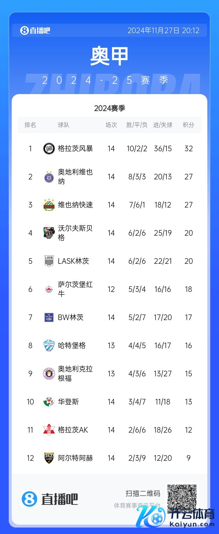 体育赛事直播 11月27日讯 萨尔茨堡红牛上赛季被格拉茨风暴斥逐联赛十连冠的霸业,球队请来克洛普的助教林德斯带队,这亦然林德斯初度担任主熟习。 本赛季萨尔茨堡联赛5胜3平3负只拿到18分,在少赛两轮的情况着过期榜首的格拉茨风暴多达14分。欧冠方面球队通过附加赛晋级正赛,但在小组赛球队1胜4负打入3球狂丢15球。 体育赛事直播