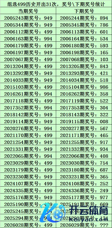 上期精采:陈列三第2026028期奖号为:499体育最新信息,类型:组三,历史上直选号码499出现了13次,组选号码499出现了31次。
