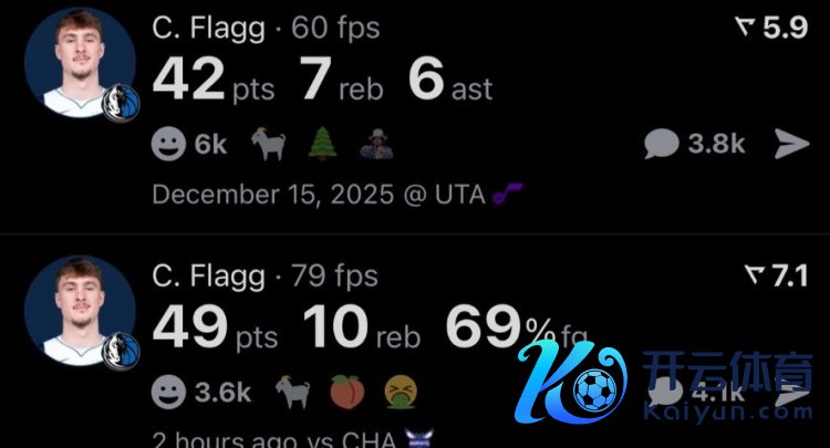 此役,独行侠状元秀弗拉格出战38分钟,投篮29中20,三分5中3,罚球6中6,得回49分10篮板3助攻1盖帽。